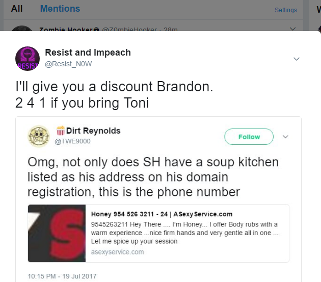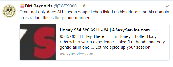 Brandon is working overtime doxing and trolling for his employer, the Spina Law firm. Now he’s doxed me as running a naughty massage business.